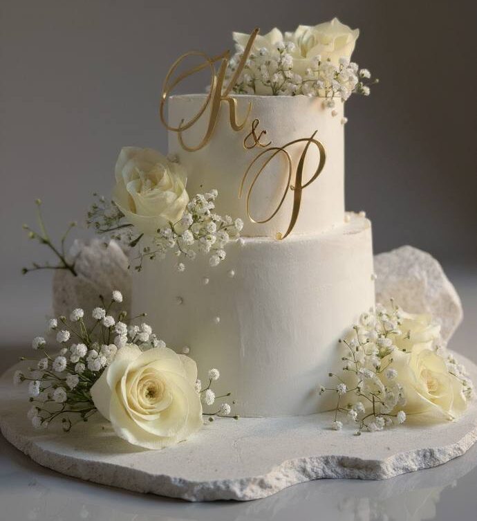 Wedding cake with white roses